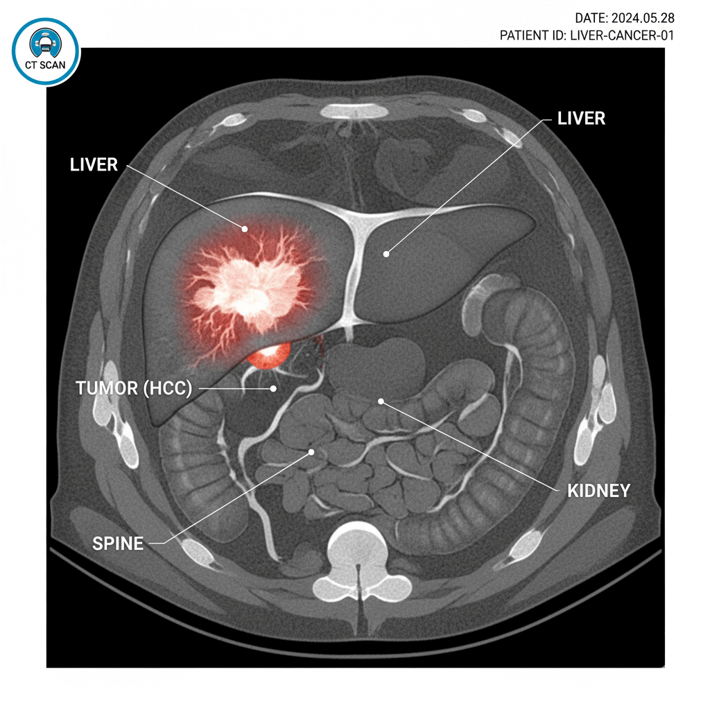 곧바로 간 CT 검사를 진행하였는데, 암이 의심된다는 소견을 받았습니다.
