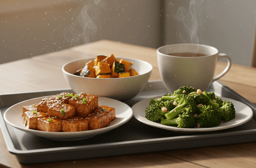 저녁은 두부조림과 브로콜리, 단호박을 곁들인다면 부작용을 완화하는데 도움이 됩니다.